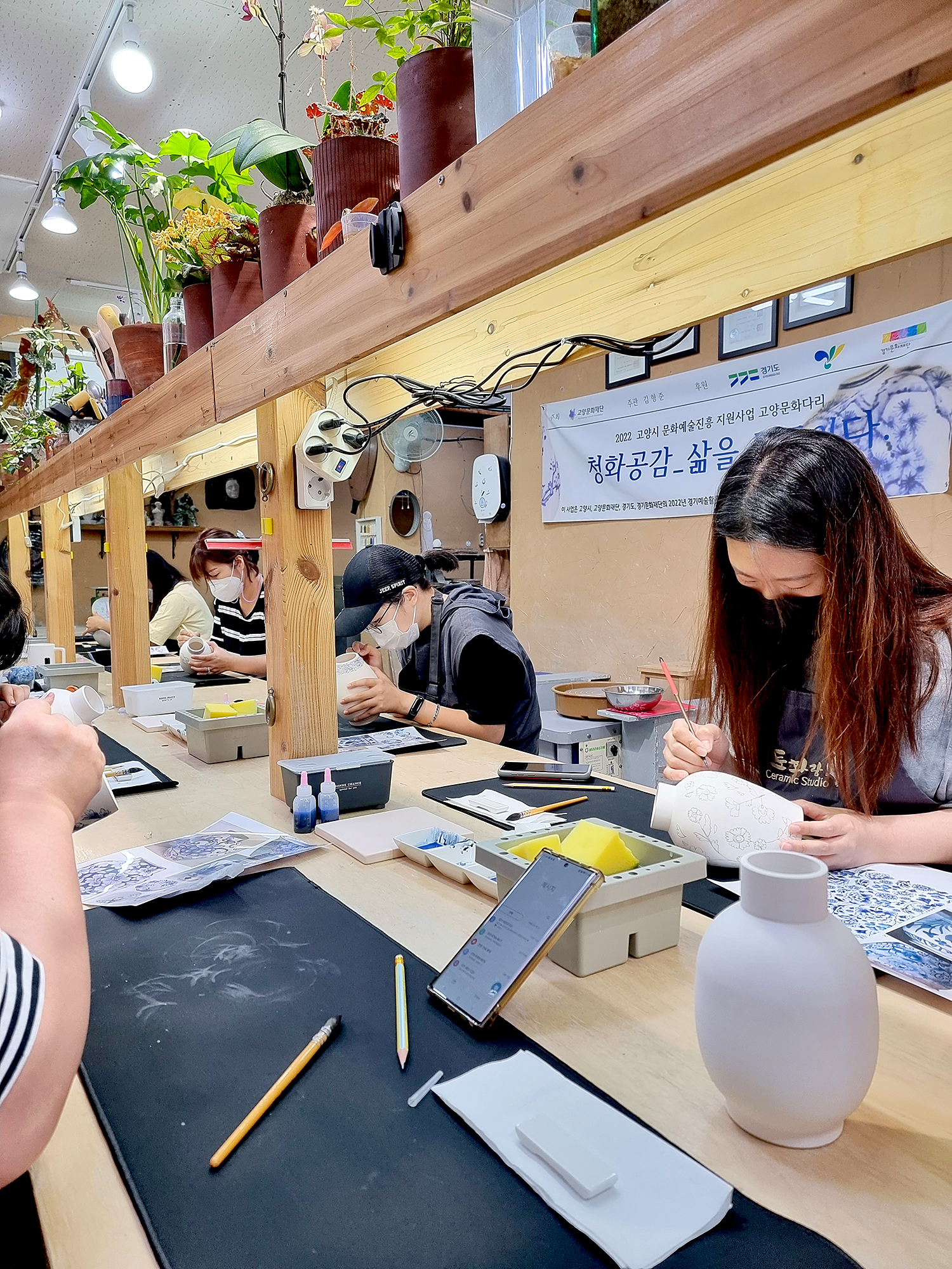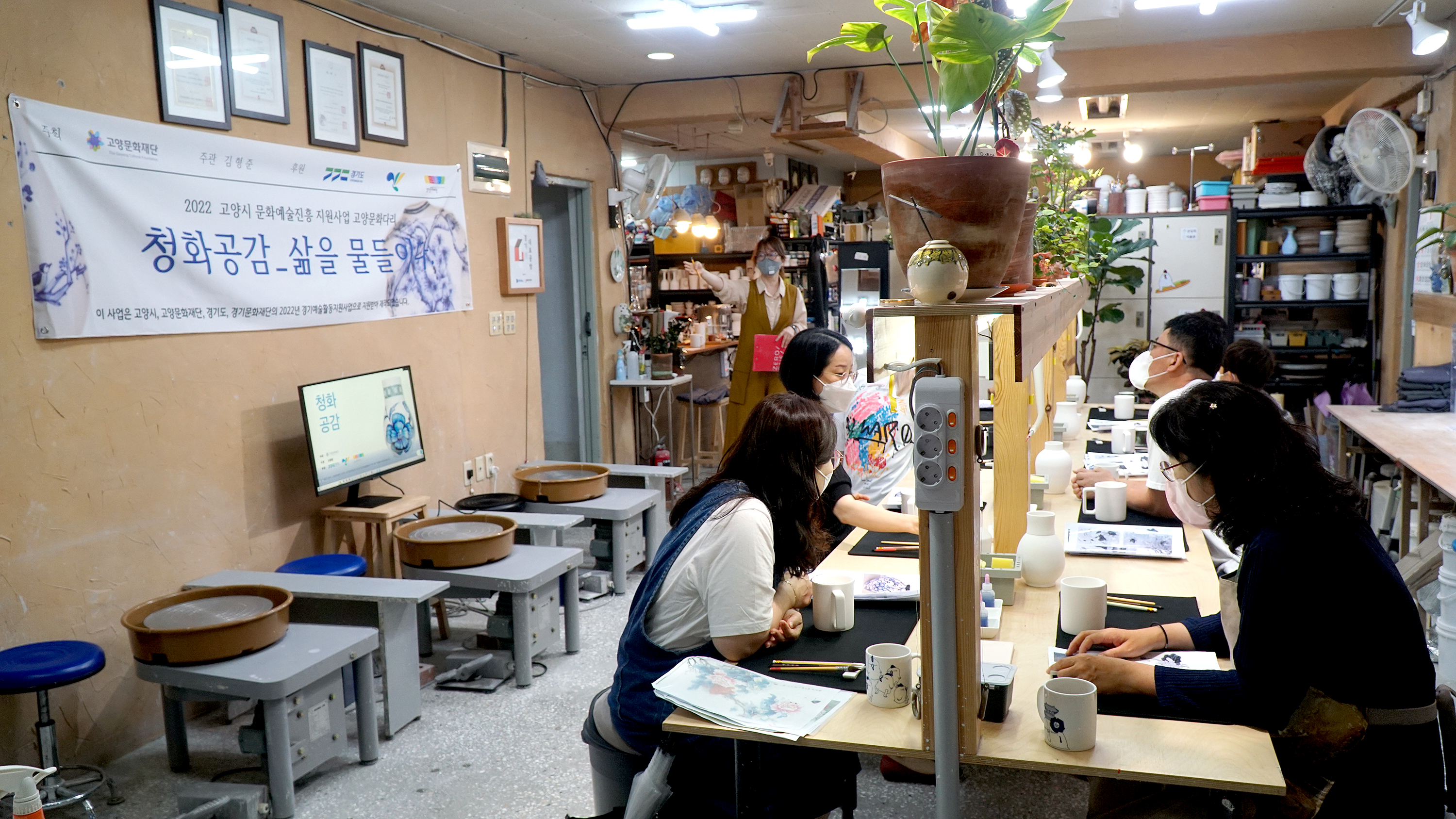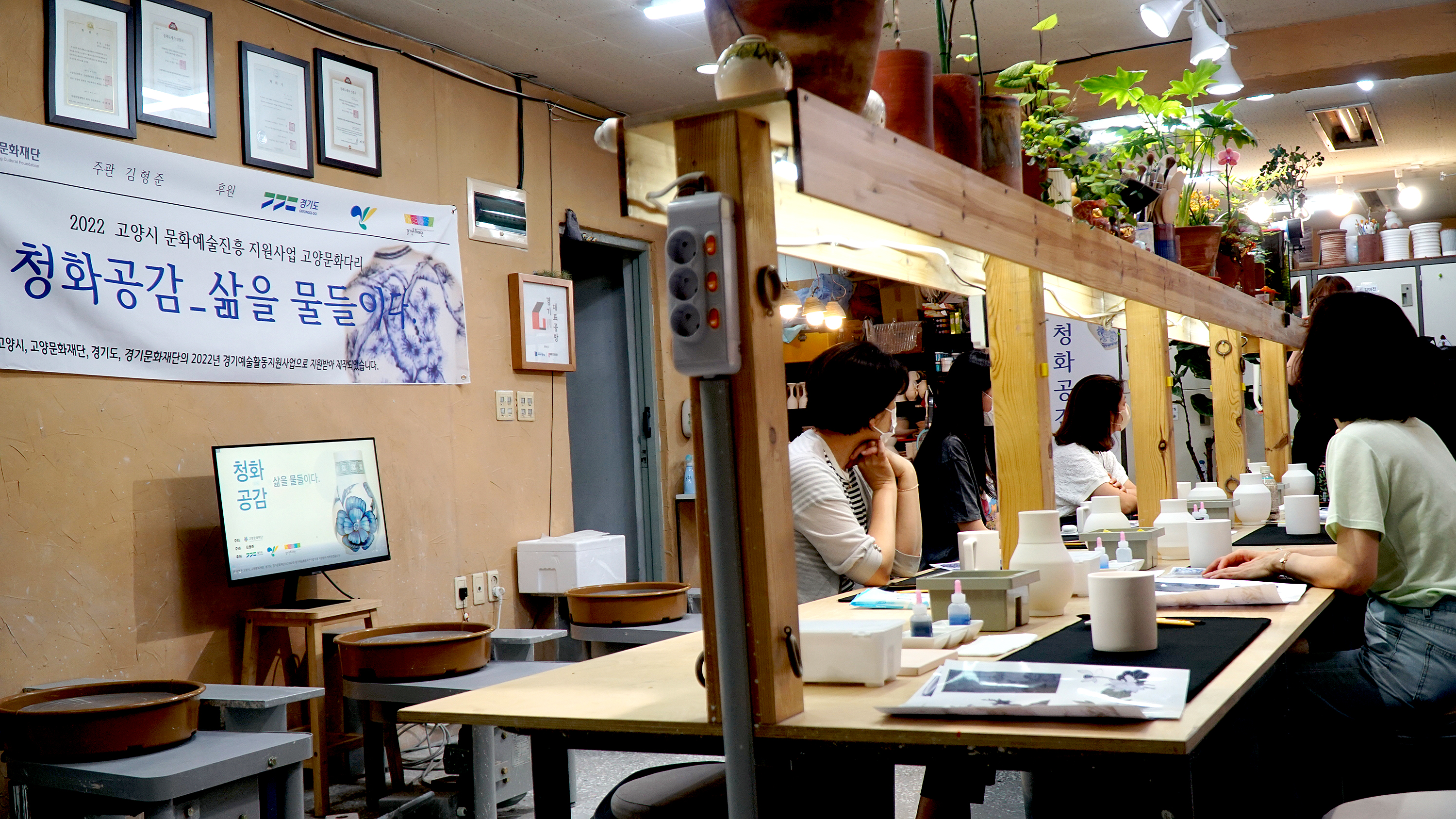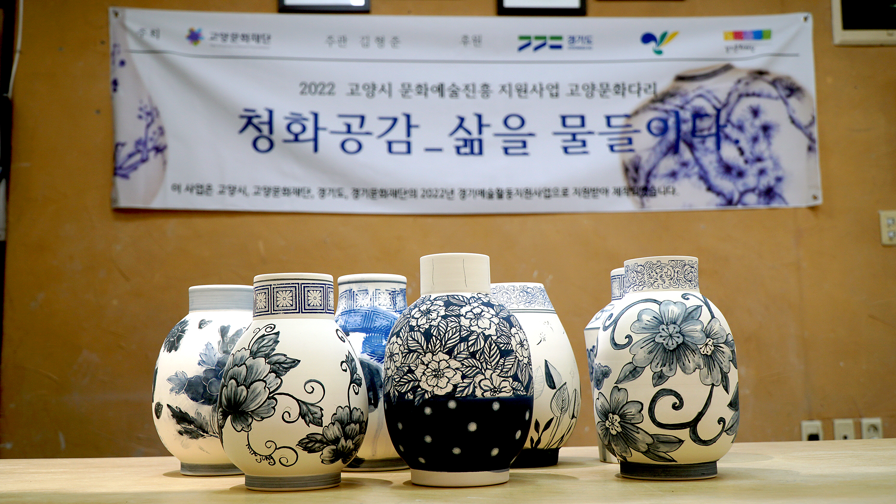 <청화공감_삶을 물들이다>는 우리나라 청화백자의 아름다움과 가치를 알리고 고양시에서 20여년동안 도예교육과 작가활동을 하고 있는 도예가와 함께 우리나라 전통 도자예술을 직접 체험하고 향유할 수 있도록 기획한 프로젝트입니다.