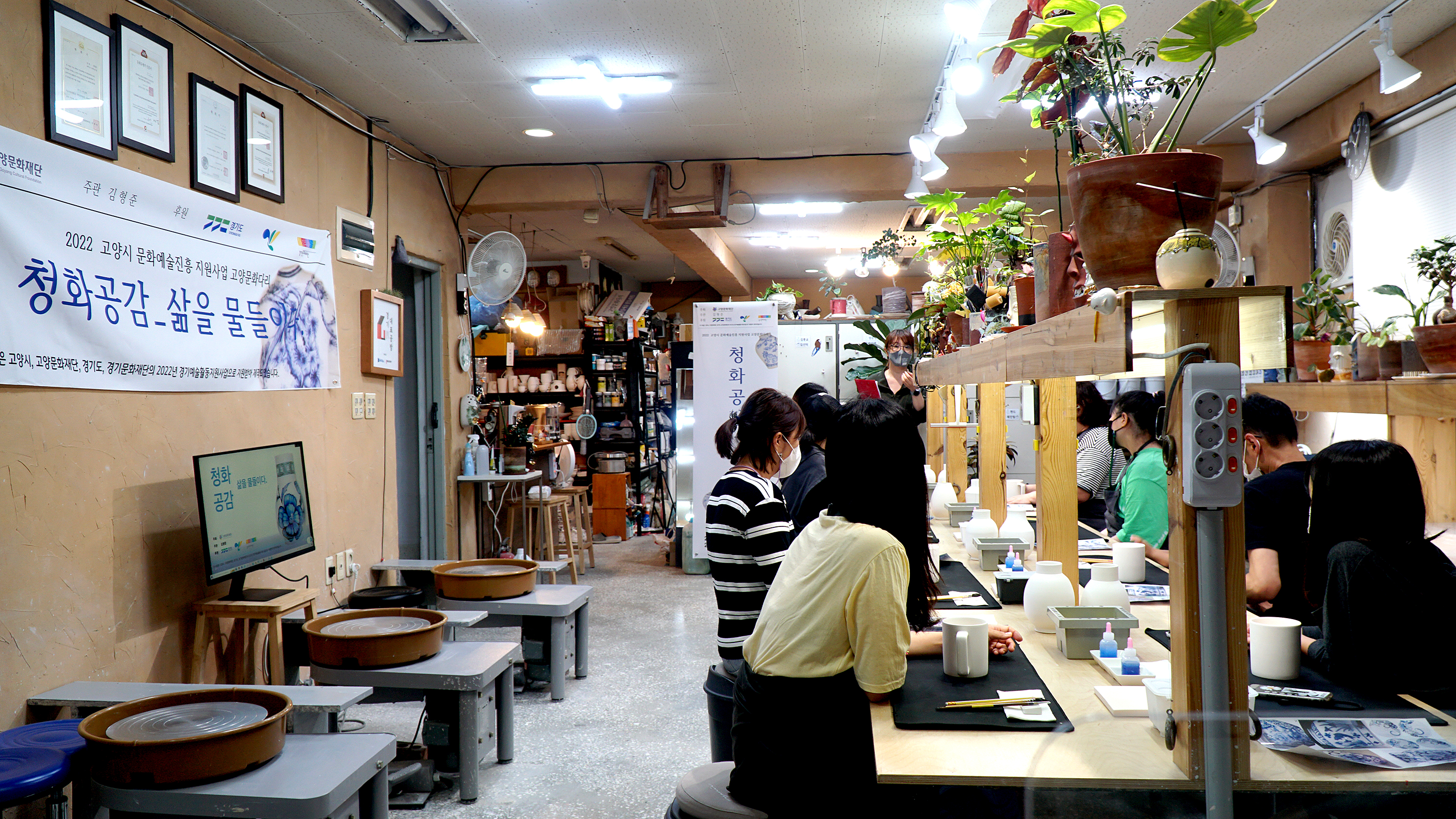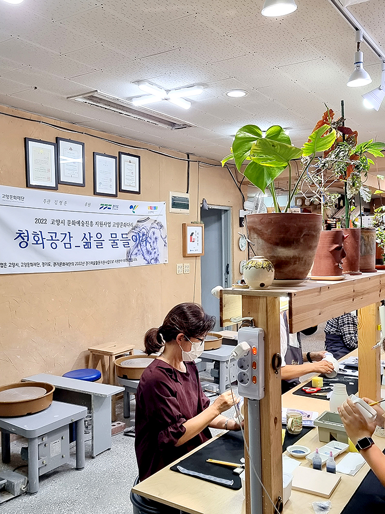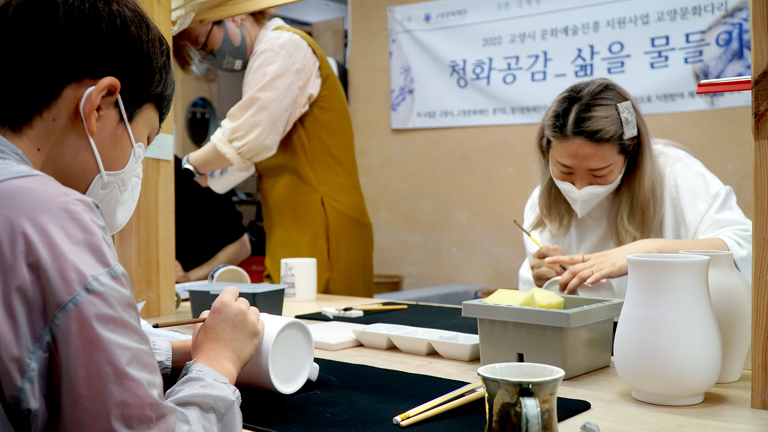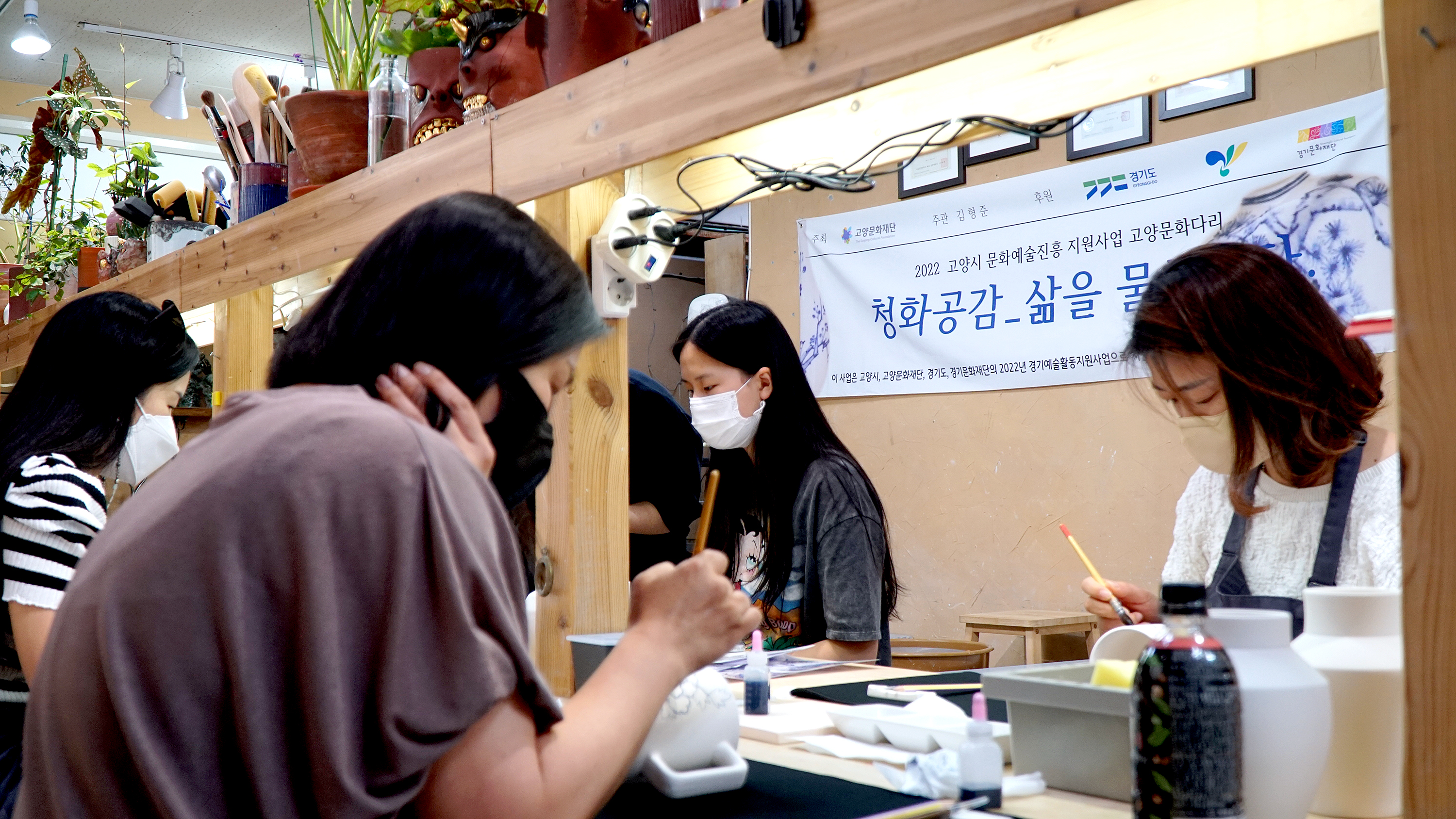 <청화공감_삶을 물들이다>는 우리나라 청화백자의 아름다움과 가치를 알리고 고양시에서 20여년동안 도예교육과 작가활동을 하고 있는 도예가와 함께 우리나라 전통 도자예술을 직접 체험하고 향유할 수 있도록 기획한 프로젝트입니다.