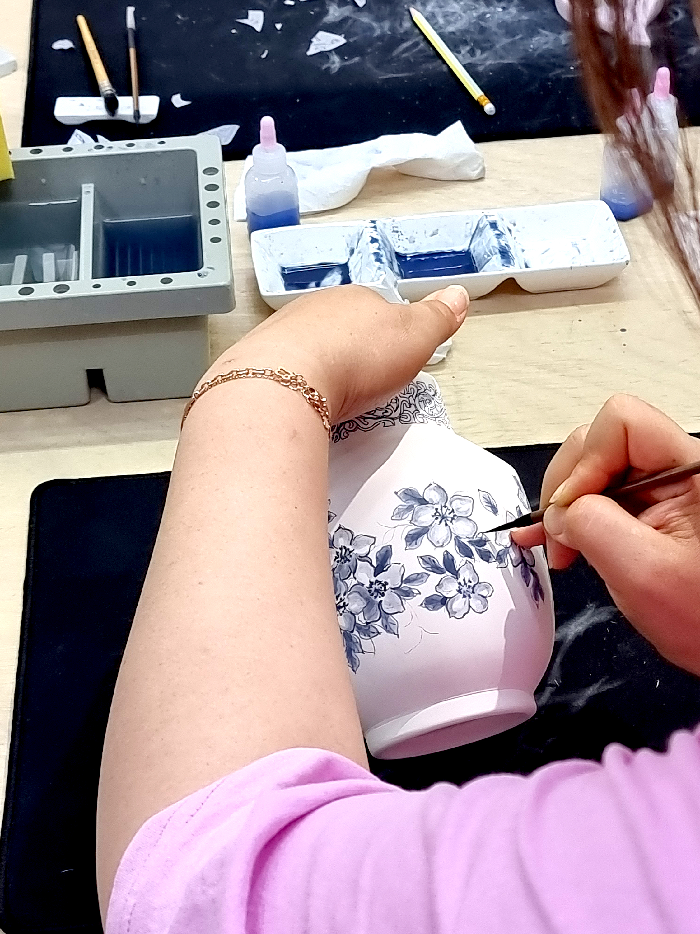 ▶ 체험내용 : 도예가가 만든 백자 초벌기에 코발트 안료로 그림 그리기_ 화병 1점 + 머그컵(기부)