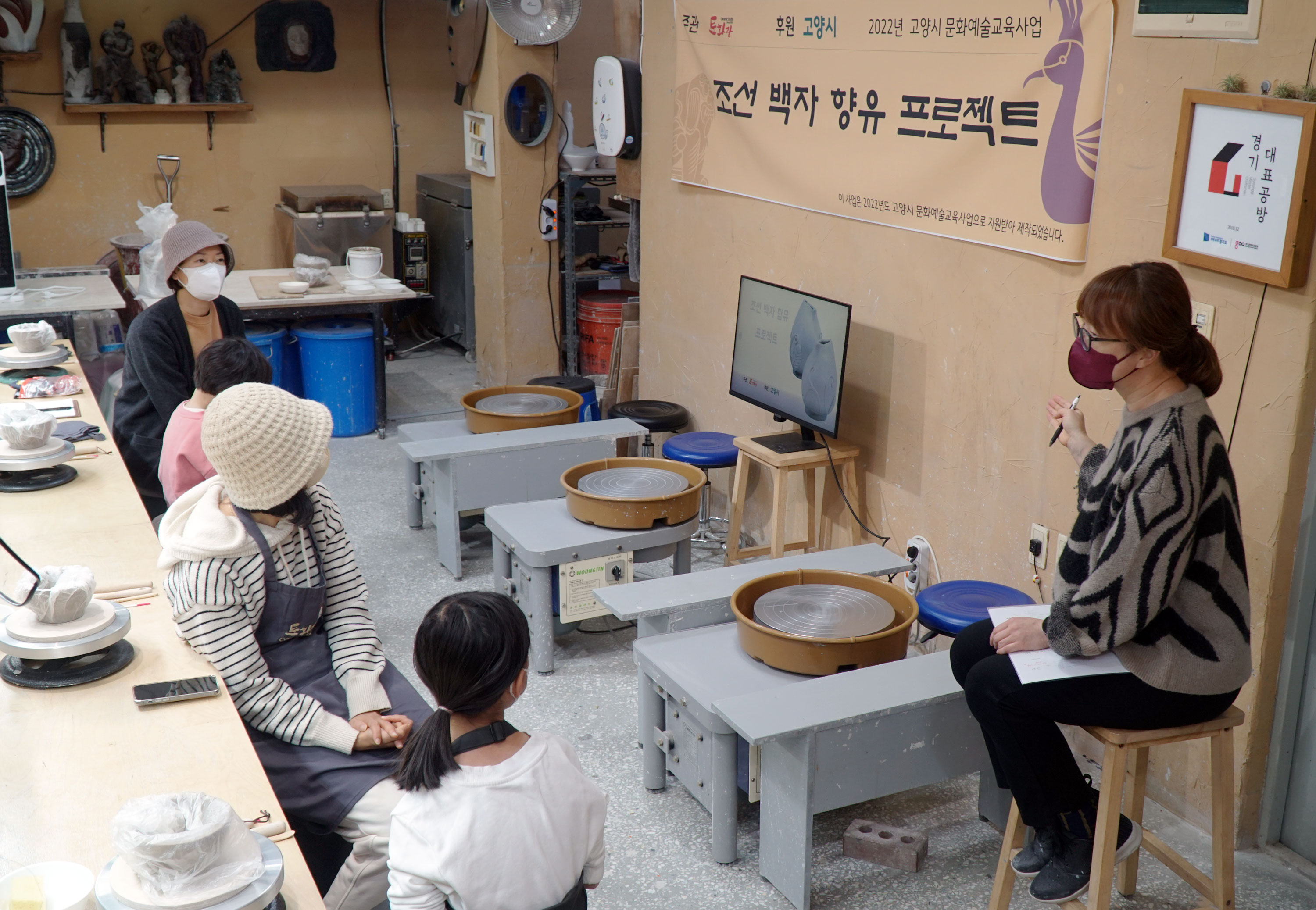 “ 조선 백자는 단아하고 격조있는 아름다움을 가진 우리의 전통 도자기이자 조선시대 도공들의 섬세한 기술력과 미감을 만끽할 수 있는 한국의 도자 예술품으로 그 가치를 인정받고 있습니다. < 조선백자 향유 프로젝트> 는 고양시에서 20여년간 도예교육과 작가활동을 하고 있는 도예가와 우리나라 조선백자에 나타난 도자 장식기법을 알아보고 전통 도자예술을 직접 체험하고 향유할 수 있도록 기획한 프로젝트입니다. ”